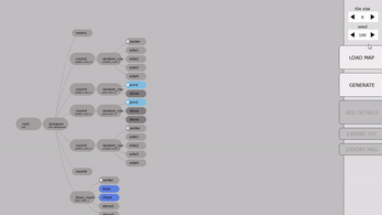 Maps are represented by graphs of nodes, which can be randomised, corresponding to required areas and their connections. The generator then converts the graph into a 2d map from the bottom up, building and connecting areas into larger areas, and then postprocesses the results and represents it with a tileset.